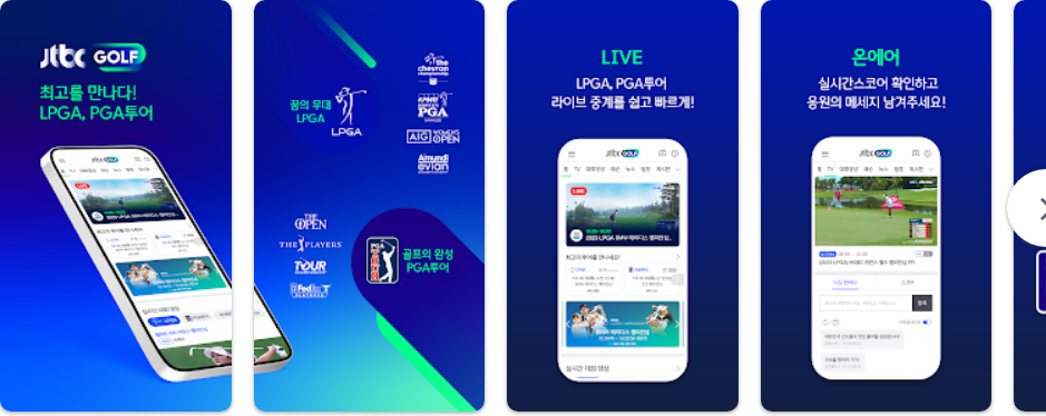 - LIVE 방송: LPGA, PGA 투어 및 국내 메이저 대회를 실시간으로 시청할 수 있는 기능을 제공합니다.